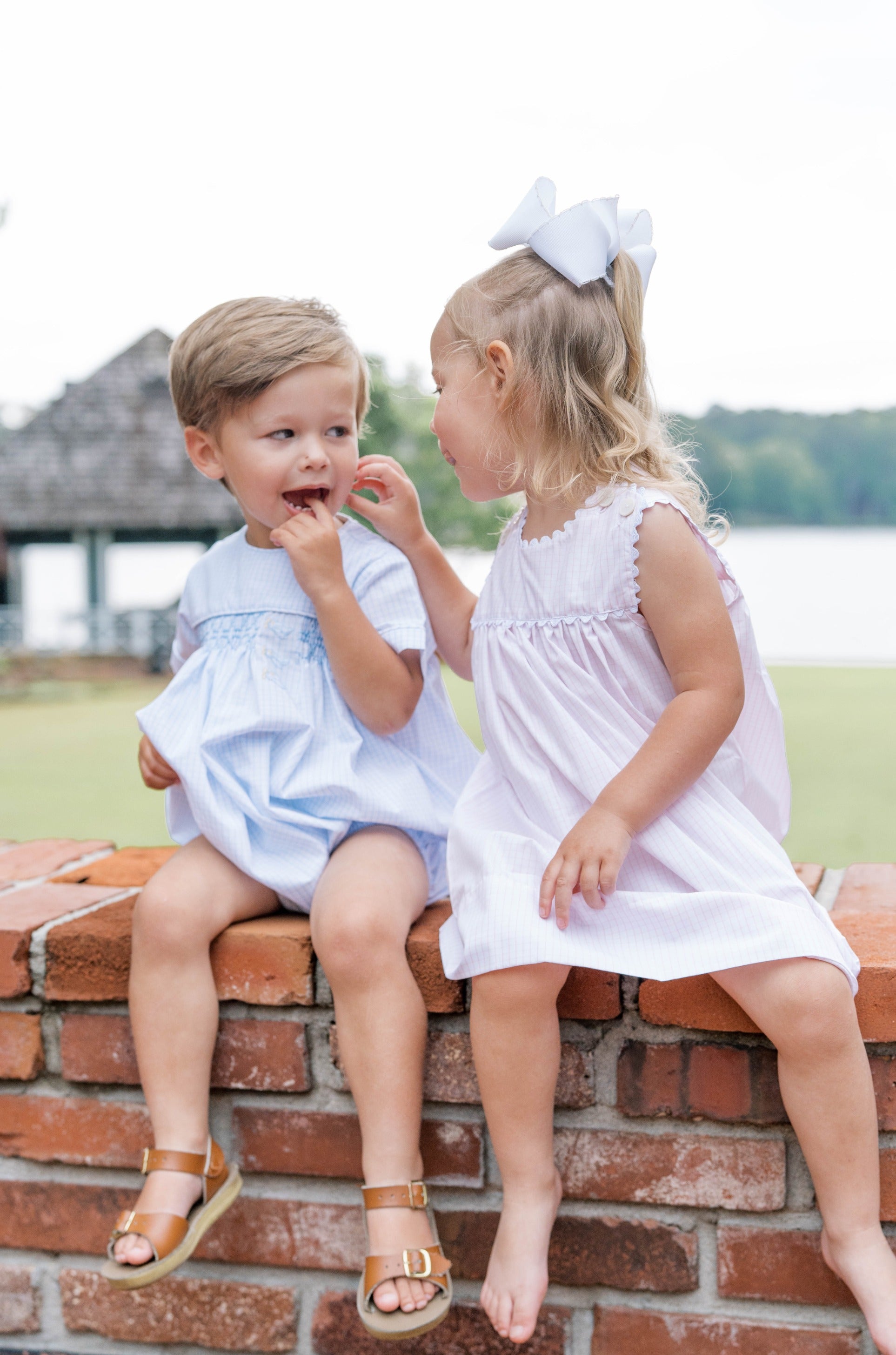Made from soft woven cotton, this sleeveless dress features delicate white ric rac trim for a playful touch and buttons at the shoulders for easy dressing. A classic silhouette with a fresh, feminine twist—just right for your little one's warm-weather wardrobe.